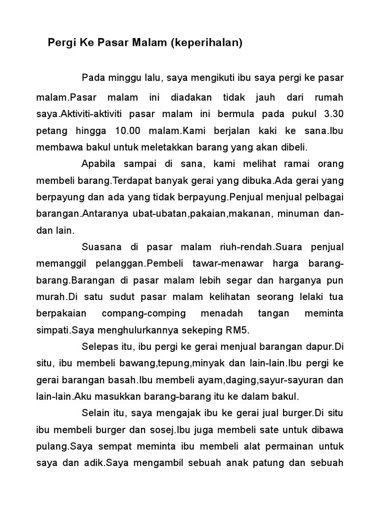 Suasana di pasar begitu hingar-bingar. Pergi Ke Pasar Malam Karangan Pdf Banjir kilat berlaku disebabkan oleh beberapa faktor. Pada malam itu kami telah menginap di asrama Sekolah Menengah Teknik.